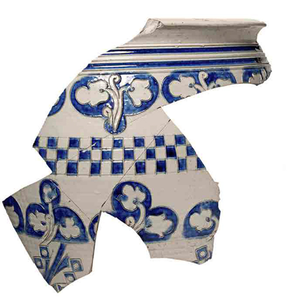 | 5c | sgraffito, floraal en dambordpatroon blauw |