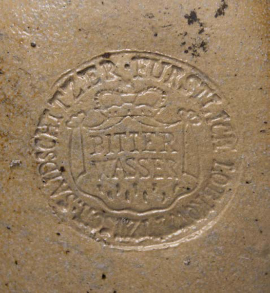 | 4b | kleine bitterwaterfles met ronde bodem en vierkante schouder, kleine cilindrische hals, standvlak |