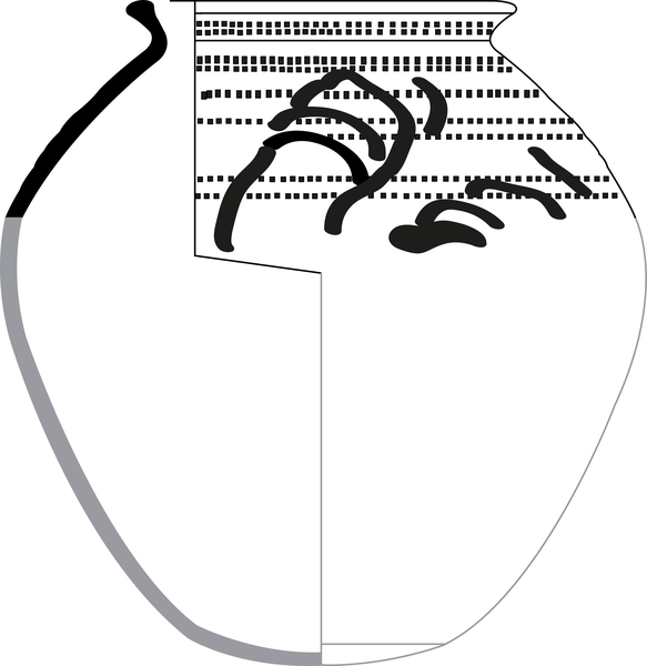| 4b vorm | bolle pot met verdikte, afgeronde rand en dekselgeul, lensbodem |