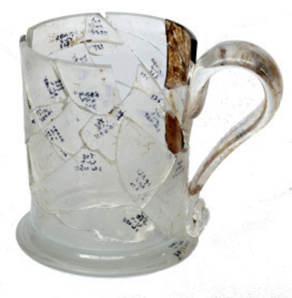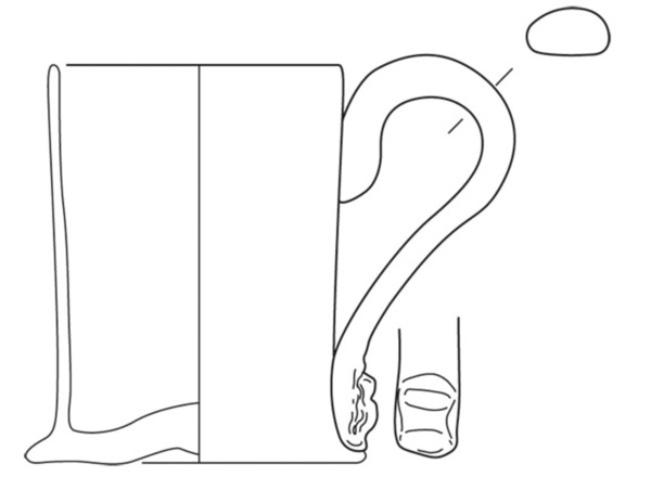 | 4b vorm | dikwandige cilindrische beker met oor, uitstaand verdikt standvlak met pontilmerk |