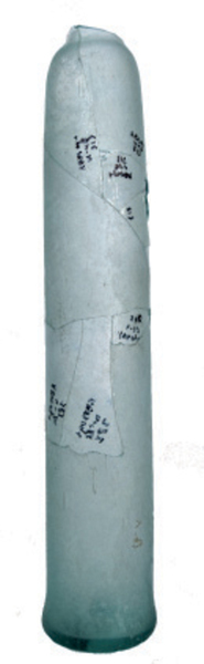 | 4b | lange, smalle cilindrische of licht conische fles, met lange rechte of conische hals, opgestoken bodem of standvlak met pontilmerk |