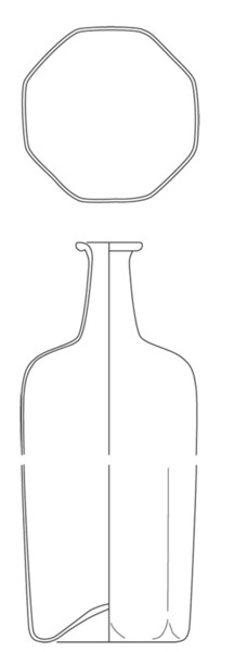 | 4b | achtzijdige fles met lange hals, opgestoken bodem met pontilmerk |