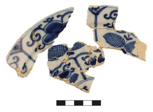 | 5c decoratie | inwendig: 2 rijen compartimenten met gestileerde bloemen, in midden 2 concentrische cirkels met waarschijnlijk grote gestileerde bloemen blauw |