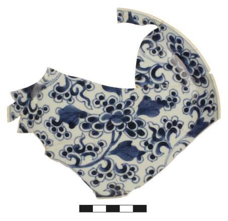 | 5c decoratie | inwendig: florale motieven; uitwendig: takken onderglazuur blauw |