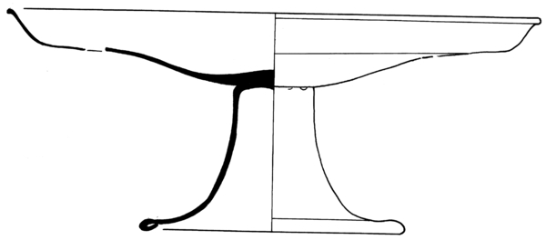 | 4b | ronde schaal op voet met licht gebogen plateau met conische lip, hoge trompetvormige voet met pontilmerk, omgeslagen voetrand |