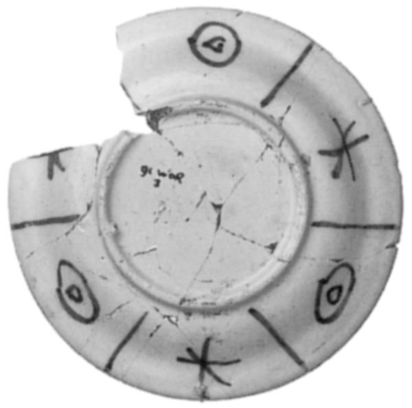 | 5c | inwendig: Chinees landschap met man in Wan-Li-stijl, vakverdeling met symbolen; uitwendig: rozetten, streepjes en sterren blauw |