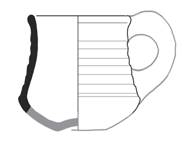 | 4b | ingesnoerde beker met uitstaande afgeronde rand, scherpe knik wand-bodem, holle bodem |