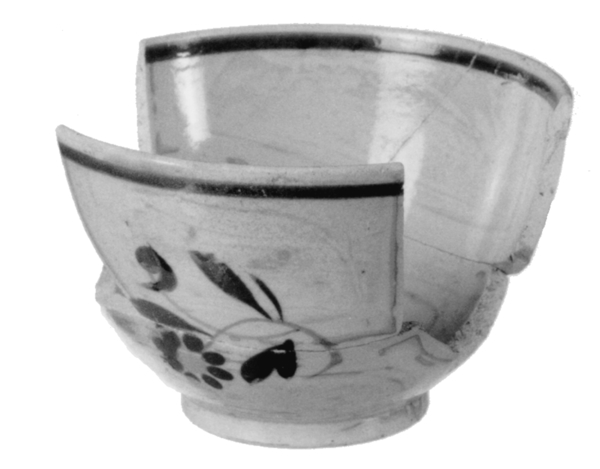 | 5c | uitwendig: handbeschilderd in blauw, geel en rood: takjes met bloemen polychroom |