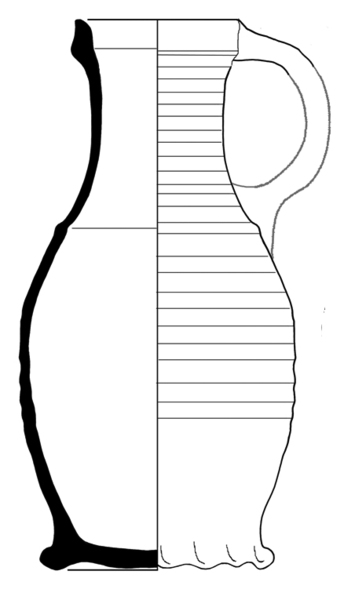 | 4b | bolle kan met vrijwel cilindrische hals en hoge kraagrand, met door twee ribbels afgezette gladde zone op schouder |