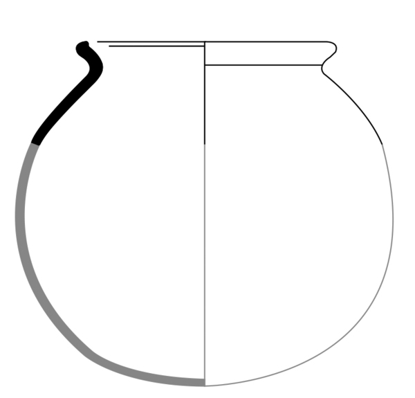 | 4b vorm | bolle pot, uitstaande afgeronde rand met lip aan binnenzijde (dekselgeul), lensbodem |