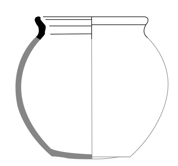 | 4b vorm | bolle pot, uitstaande afgeronde rand met lip aan binnenzijde (dekselgeul), lensbodem |