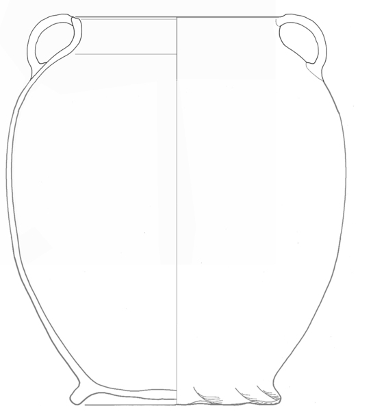 | 4b vorm | hoge pot met een ingesnoerde hals en een aan de bovenzijde afgeplatte rand, standring |