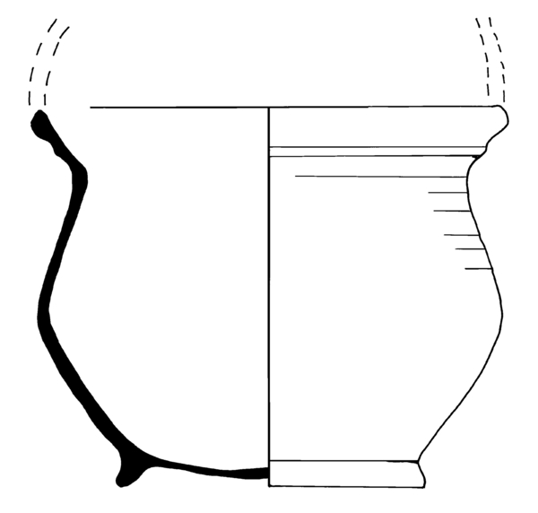 | 4b vorm | bolle (potvormige) vuurtest met uitgebogen rand, ribbel op de randaanzet en met verdikte afgeronde lip, standring |