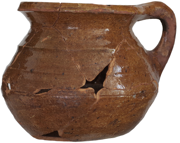 | 4b | bolle pispot met iets taps toelopende hoge hals en kraagrand, holle bodem |
