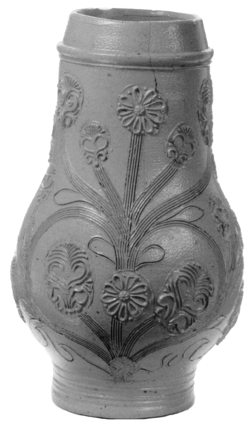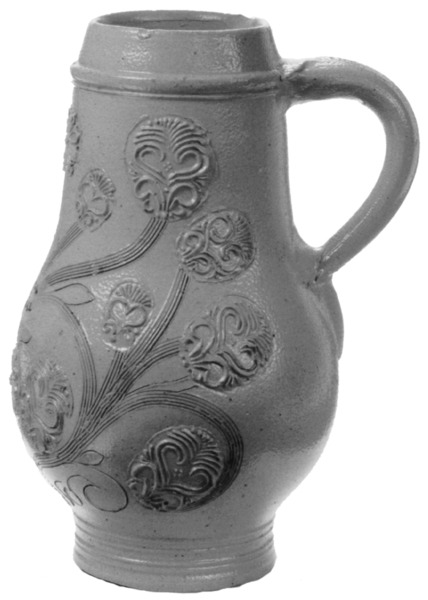 | 4b | rondbuikige drinkkan met zeer hoge wijde hals en ribbel, op standvoet |