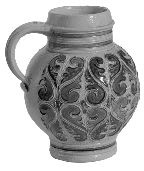 | 4b | zeer bolle kan met wijde hals met kraagrand, ribbel op halsaanzet, standvoet |
