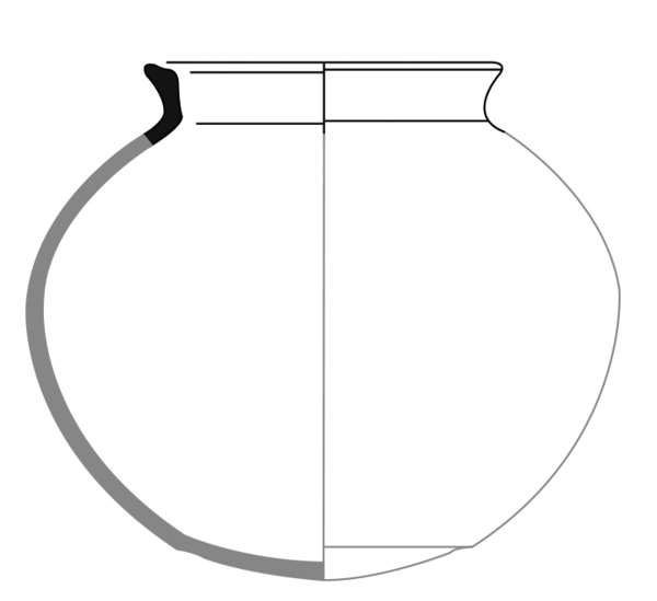 | 4b vorm | bolle pot met hoge, aan de bovenzijde afgevlakte rand, lensbodem |
