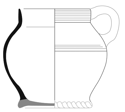| 4b | bolle beker met ribbel op buik en korte rechte hals, standring |