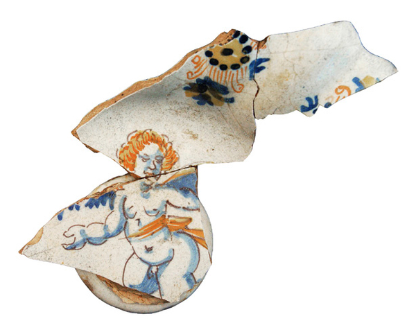 | 5c | putto binnen aigrette rand polychrome beschildering |