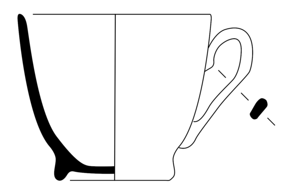 | 5c decoratie | uitwendig goudfilet: bandje om rand en streep op oor goud |