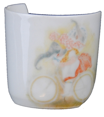 | 5c | uitwendig polychrome print: fietsende olifant in jurk met kind op rug polychroom |