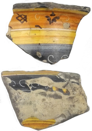 | 5c | dubbelzijdig polychroom beschilderd, uitwendig sgraffito polychroom |