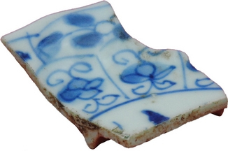 | 5c | golvende rand met daaronder dubbelzijdig reliëf op wand; inwendig blauwe decoratie: vlakverdeling en florale motieven onderglazuur blauw |