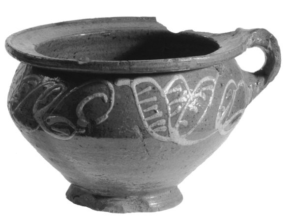 | 4b | bolle pispot met hoge schouder en geknikte rechte rand, standring |