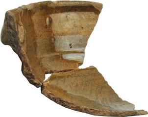 | 5d | uitwendig zwarte aanslag, inwendig krassen op bodem, aanzet aangedrukte schenklip |
