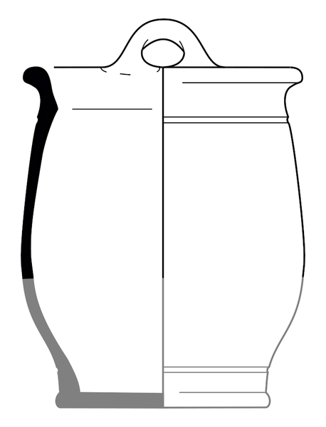 | 4b | tonvormige pot met uitgebogen verdikte afgeronde rand, ribbel op randaanzet en op onderzijde buik, standvoet |