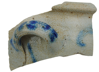 | 5c decoratie | uitwendig: blauwe strepen op oor en krullen op wand blauw |