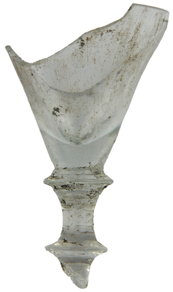| 4b | trechtervormig, komvormig of cilindrisch kelkglas, ook met uitstaande lip, massieve stam met knoop, dikwandige schijfvormige voet |