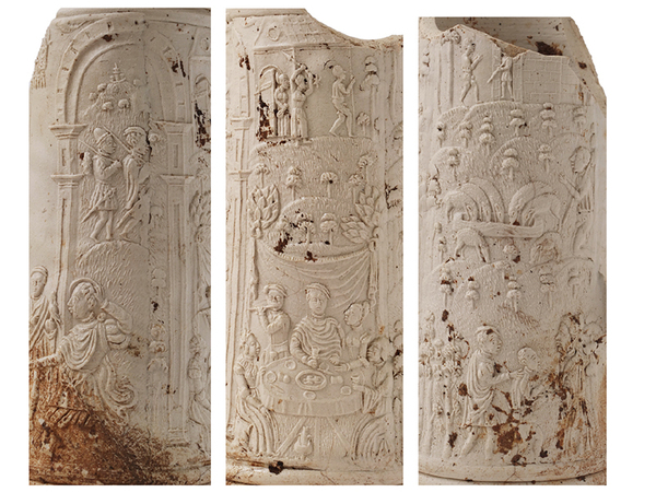 | 5c decoratie | langwerpige appliques, drie scènes van de verloren zoon |