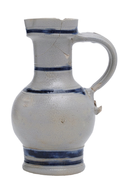 | 4b | kan met taps uitlopende hals, bovenzijde hals met knik naar binnen toelopend, ribbels op schouder en halsaanzet, standvoet |