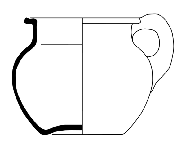 | 4b | bolle pispot met buik die vloeiend overgaat in hals, uitgebogen rand met haaks geknikte lip, holle bodem |