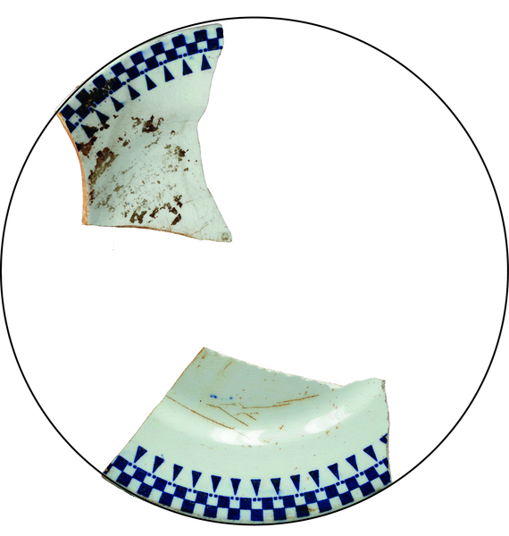 | 5c | transferprint: ornamentaal decor (zwart), merk ontbreekt, maar hoort bij hetzelfde sevies als 8-13 (cat. 64) |