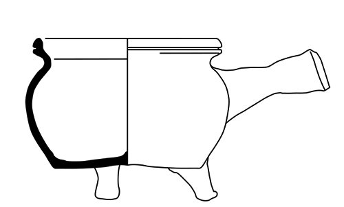 | 4b | bolle grape, kraagrand met dekselgeul, vlakke bodem met poten |