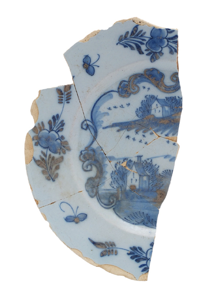 | 5c | spiegel: landschap met huisjes binnen omlijsting; vlag: floraal decor blauw |