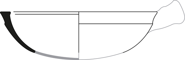 4b komvormige bakpan met ingesnoerde hals en afgeplatte (aan bovenzijde aangedrukt) rand