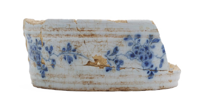 Dit lijkt me een fragment van een botervloot, waarbij de oren ontbreken. Zie dit voorbeeld: https://delftsaardewerk.nl/bekijken/voorwerp/cristel/7974-botervloot Met vriendelijke groet, Wytze Stellingwerf (wytze.stellingwerf@noord-holland.nl)