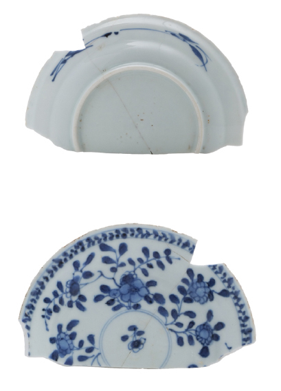 | 5c decoratie | florale versiering onderglazuur blauw |