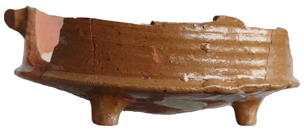 | 4b | wijd model komfoor met scherpe knik naar verticale wand, kraagrand met dekselgeul en drie horizontale nokken, poten (grape vorm) |