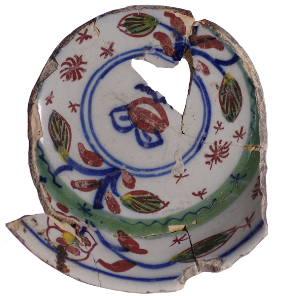 | 5c decoratie | gestileerd floraal motief polychrome beschildering (rood en blauw) |