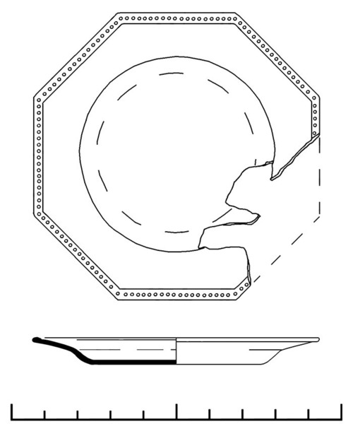 | 4b | achtkantig bord met naar buiten geknikte vlag, rand zowel met als zonder reliëfdecoratie, standvlak |