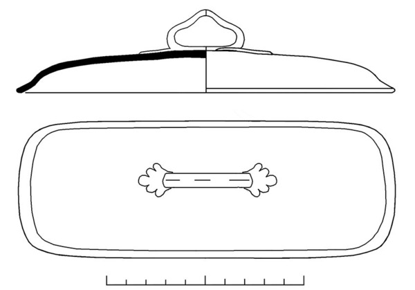 | 4b | rechthoekig deksel van zeepbak met bolle bovenzijde en uitgebogen rand, opstaand oor |