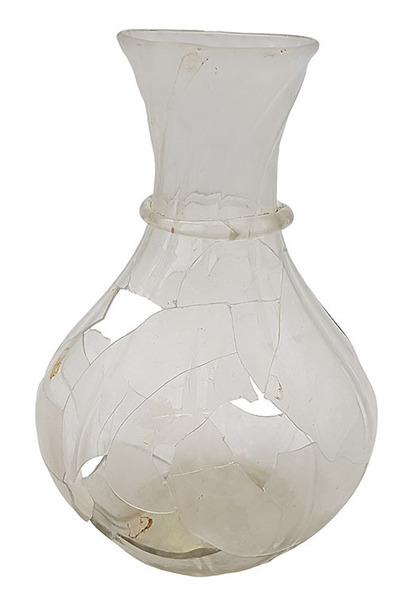 | 4b | dubbelconische tot bolvormige kan met een brede hals, verticale plooien, met of zonder draad om de hals, opgestoken bodem met pontilmerk |