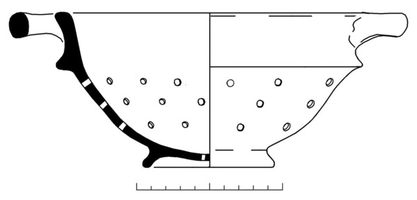 | 5a baksel | roodbakkend aardewerk , met natuurlijke ijzerconcreties (zwarte spikkels) |