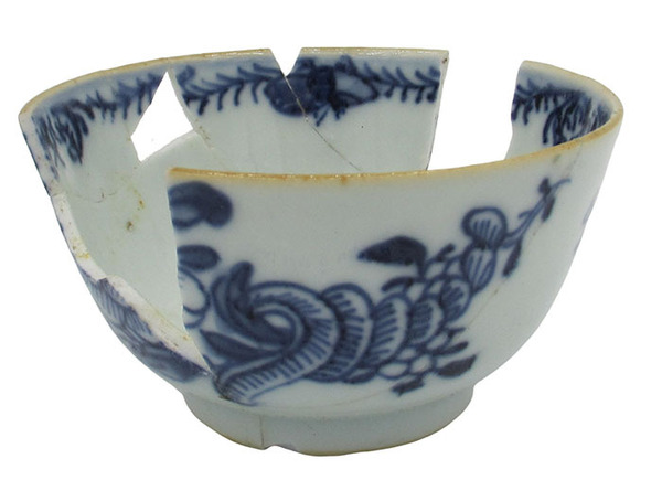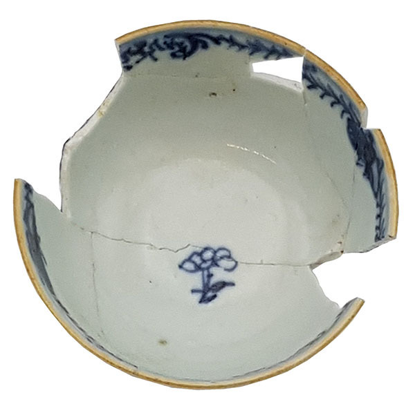 | 5d diversen | beeldmerk: bloemetje in cirkel; passende scherven uit de stortkoker 407H (15LAN123) "Qianlong-periode" |