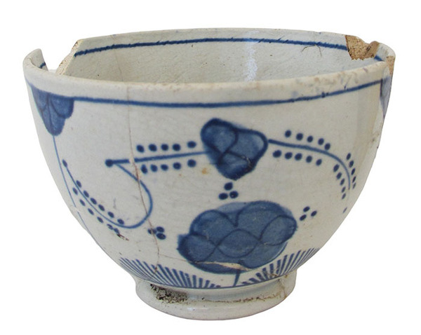 | 5c | blauw beschilderd, inwendig: bloem met steeltje, lijn onderlangs de rand; uitwendig: gestileerde strobloemen tussen twee lijnen blauw |