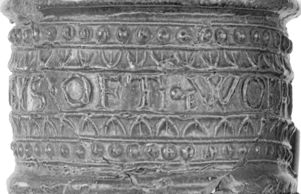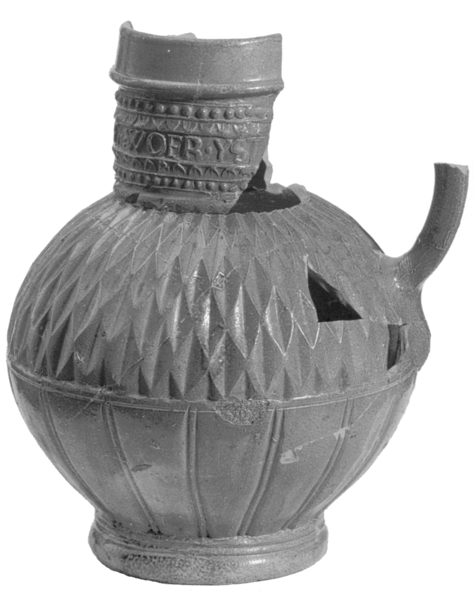 | 5c | uitwendig: wafeldecor, op hals band met randschrift '..R. WEYSO.OFT.eWOER.YST…' |